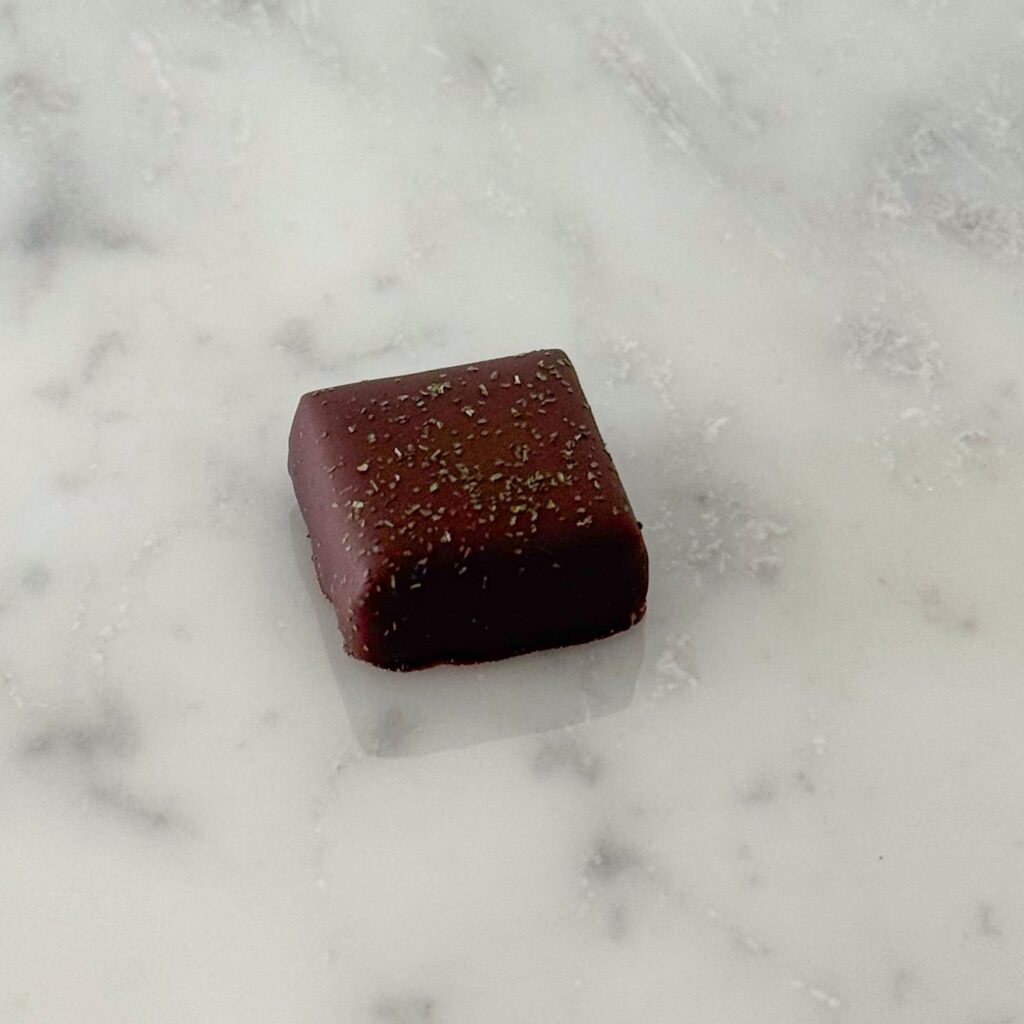 ハーブのようなフレッシュミントが爽やかな口溶けの良い生チョコ入りのショコラ