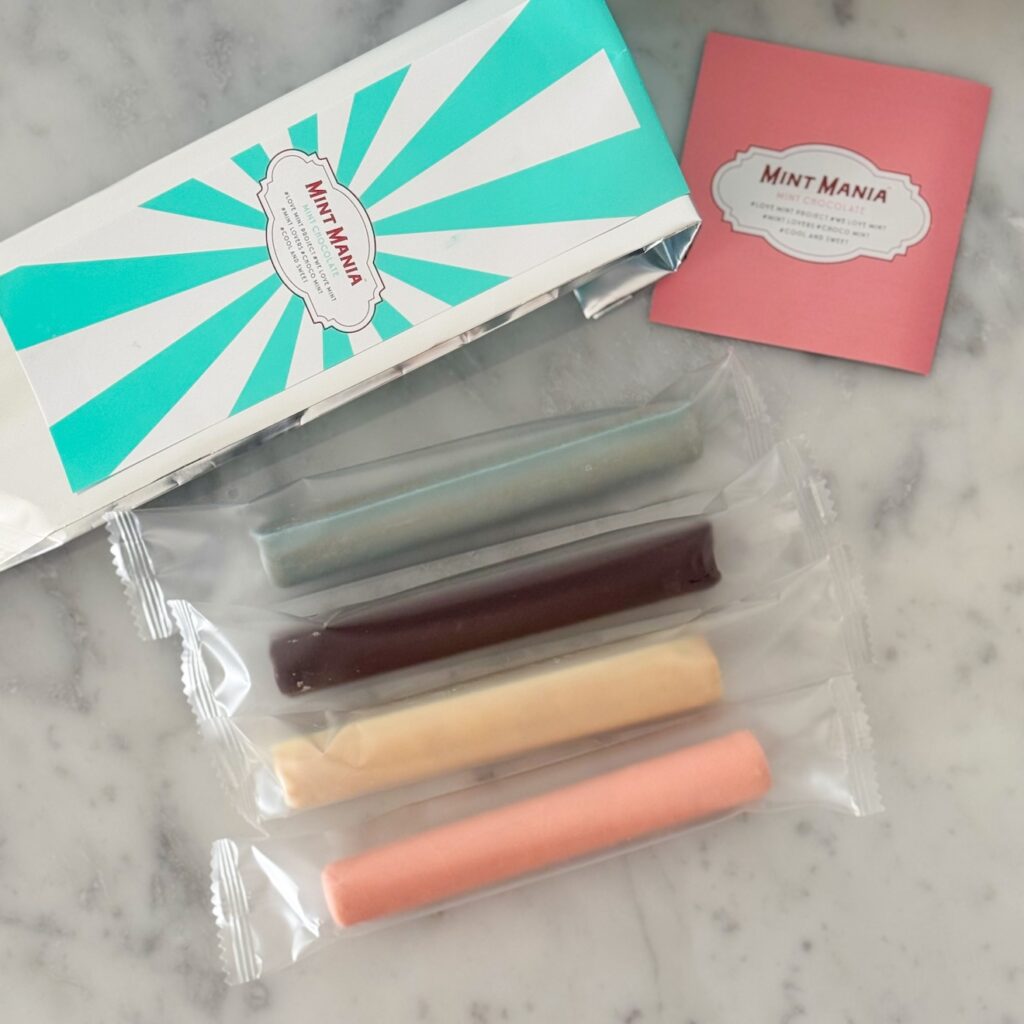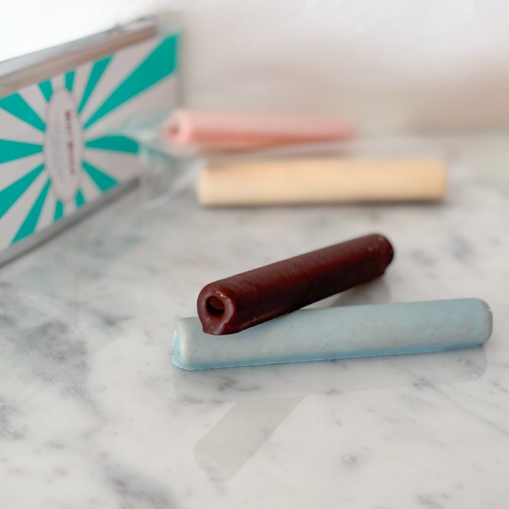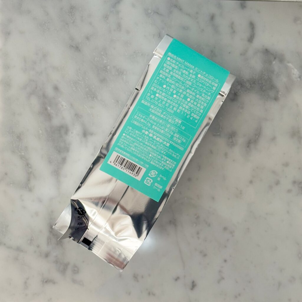 サクサクのロール状の焼き菓子に和ハッカのスッキリとした爽やかさのミントチョコレートをたっぷりとかけたチョコスイーツ