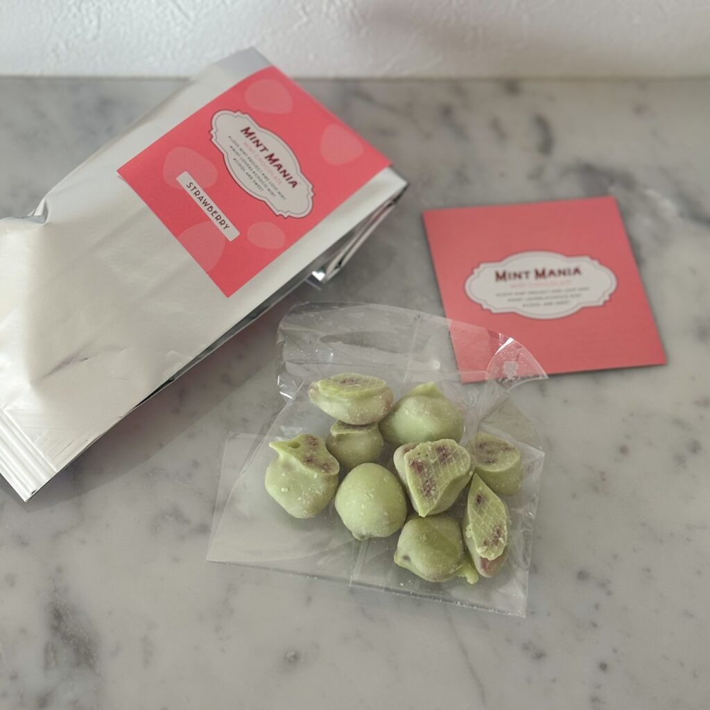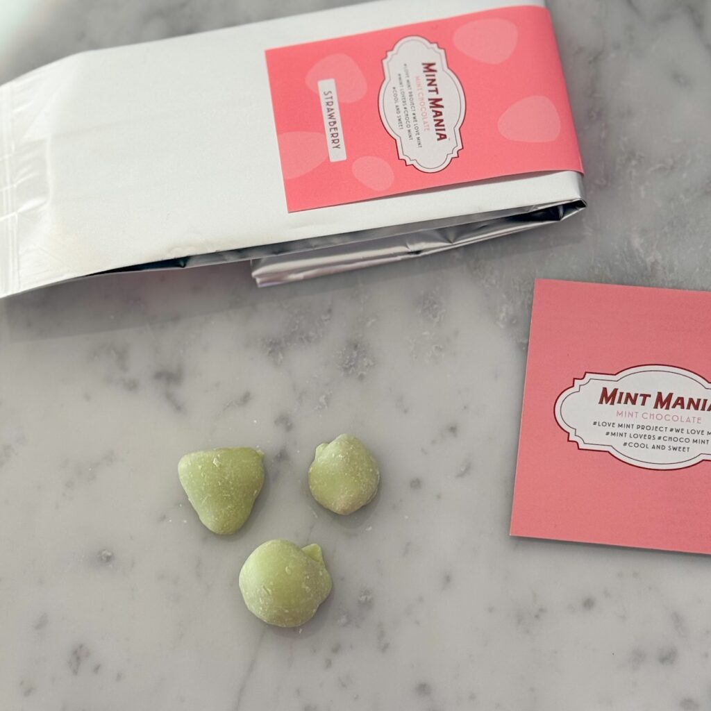 一口サイズのかわいいセミドライのイチゴをミントチョコレートでコーティング