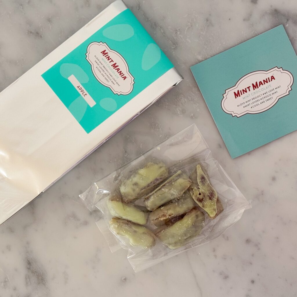 食感豊かなセミドライのりんごを爽やかなミントチョコレートでコーティング