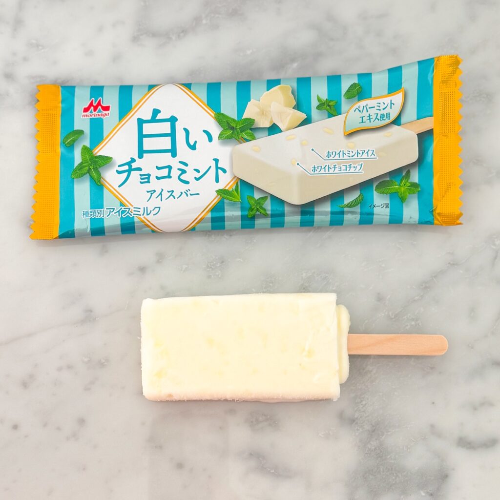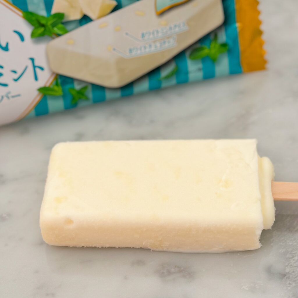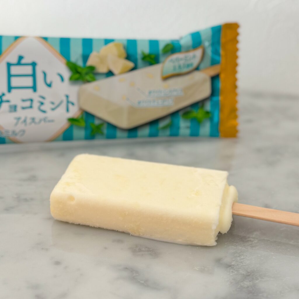 濃厚なミルクのホワイトミントアイスにホワイトチョコチップがたっぷり入ったまっ白のチョコミントアイスバー
