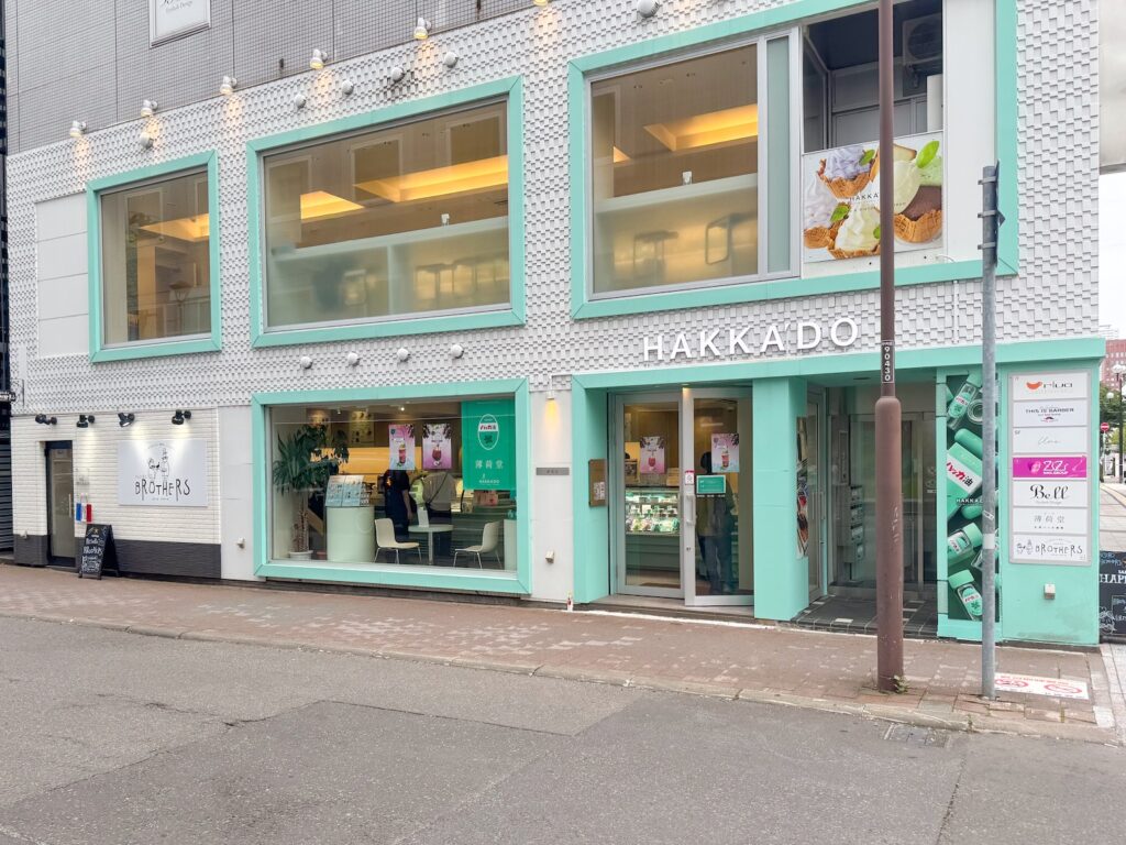 札幌三越を臨む通りを少し進むと、爽やかなミントブルーのかわいい外観が見えてきます。