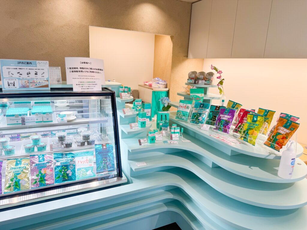 入り口を入ると目の前には、キャンディなどの北見ハッカ通商さんのアイテムがたくさん!