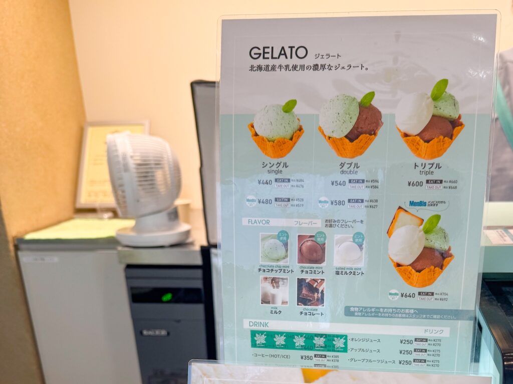 メニューはジェラートを中心に、アイスクリームやドリンクが用意されています。
