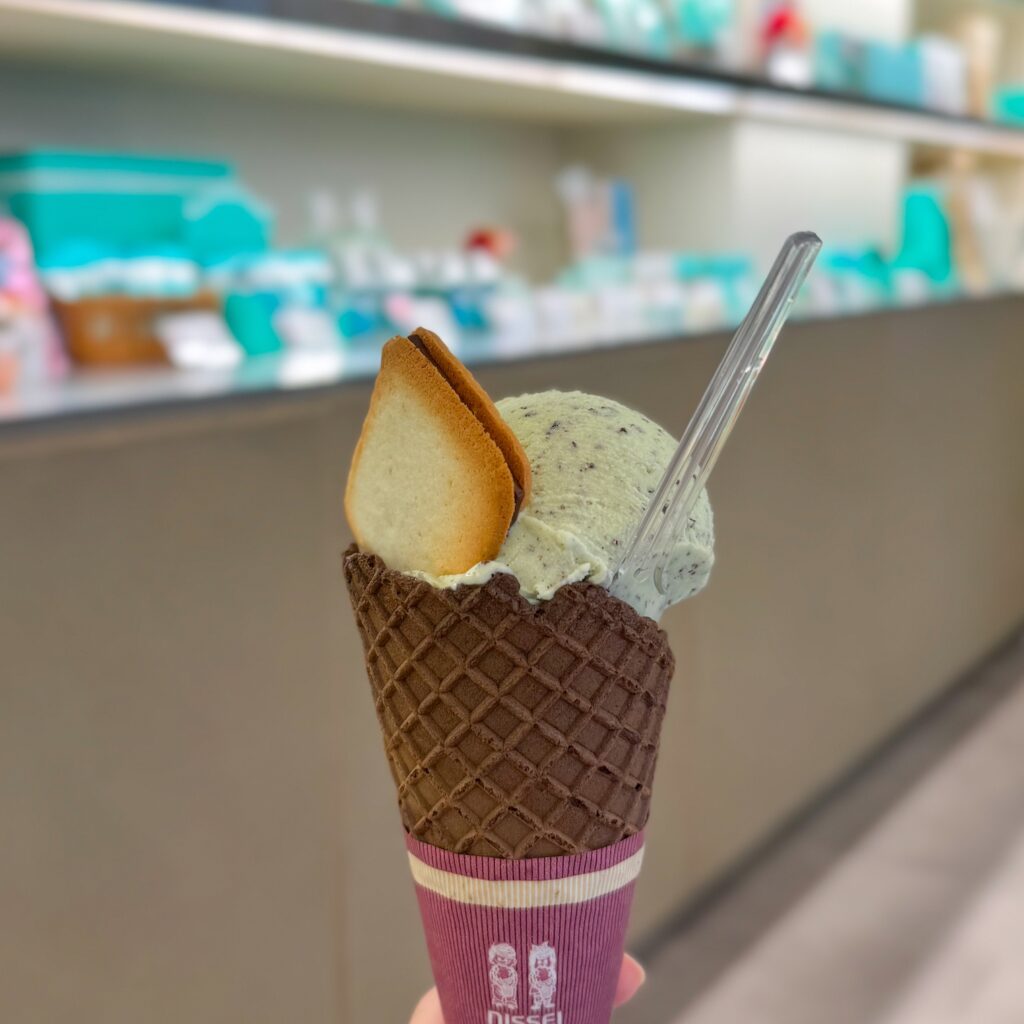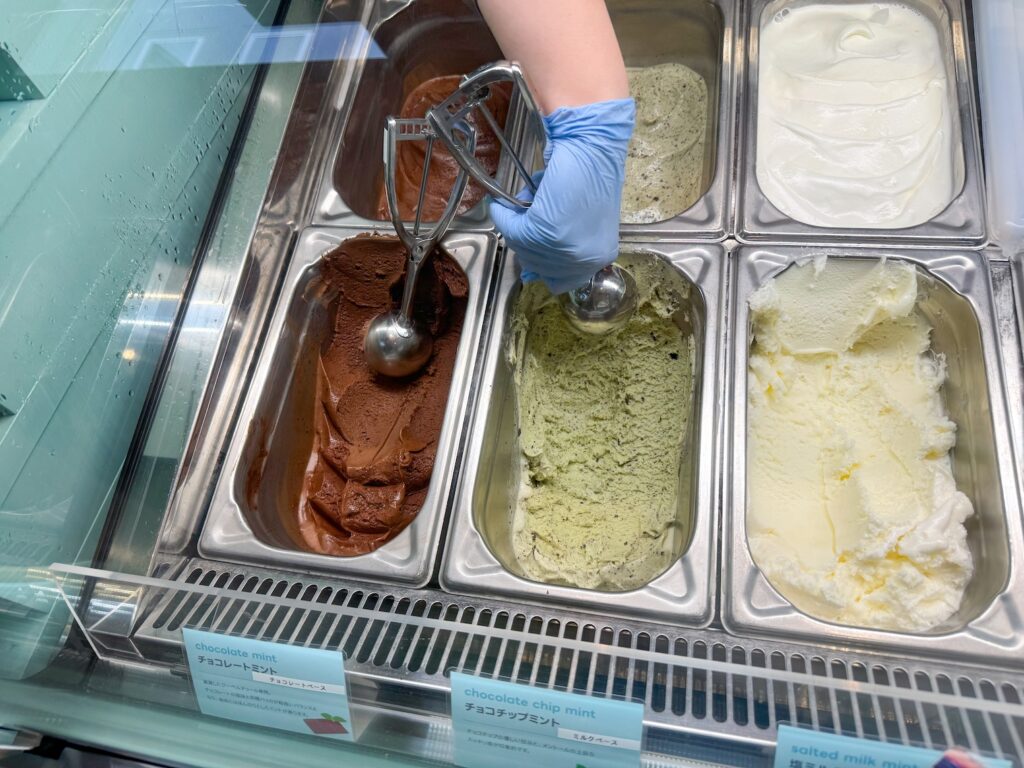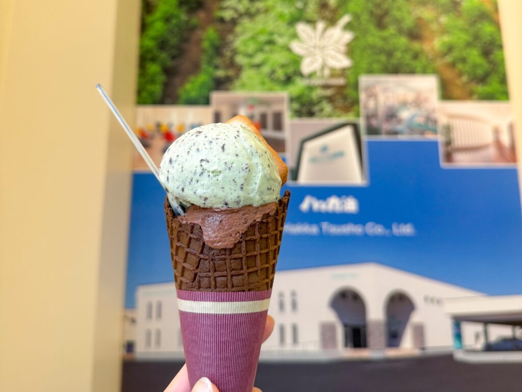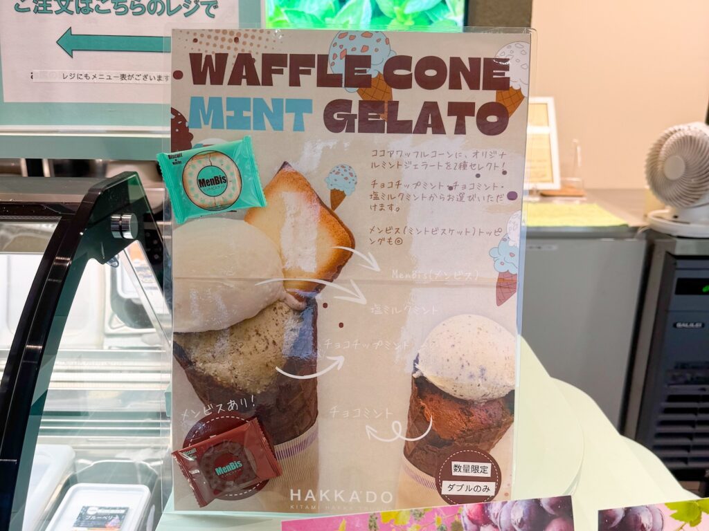 薄荷愛溢れる北見ハッカさんの札幌ショールームでいただく絶品チョコミントジェラート。